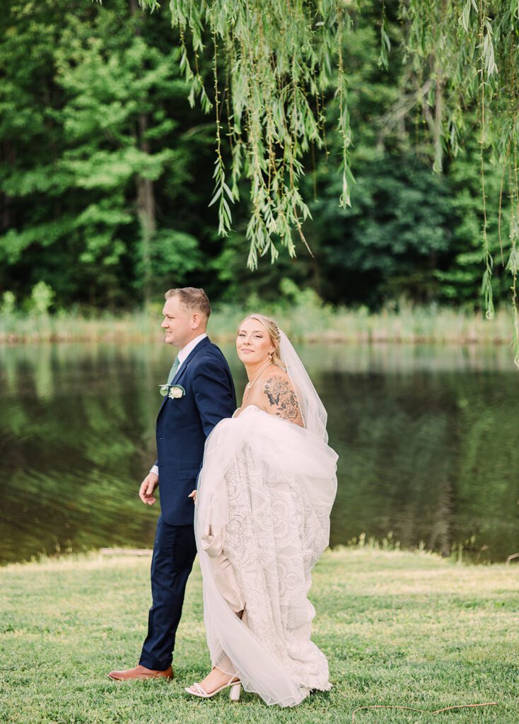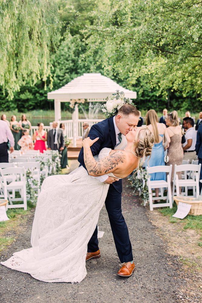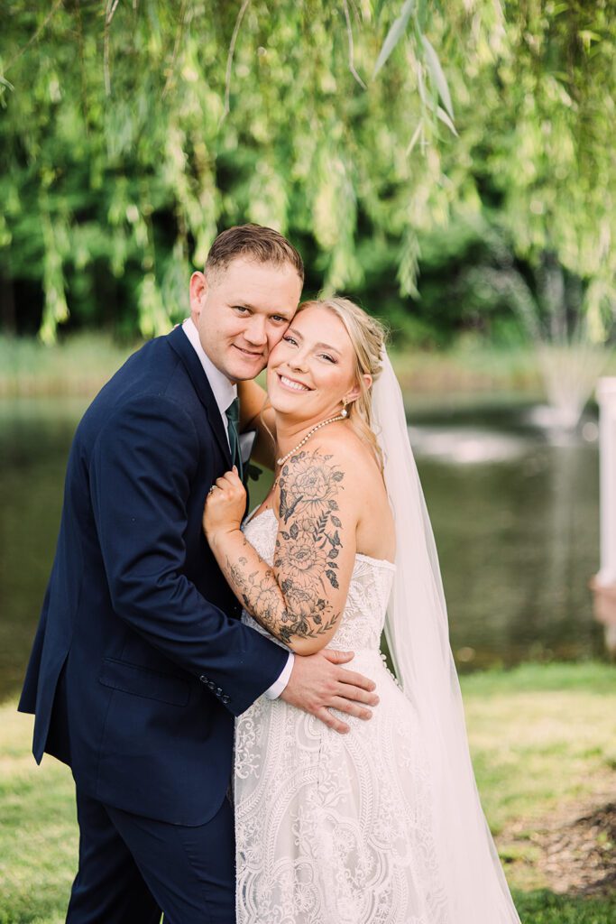 There ceremony was set on a beautiful pond with fountain and those gorgeous Virginia greens. Just stunning, paired with the gorgeous flowers was a match made in heaven!