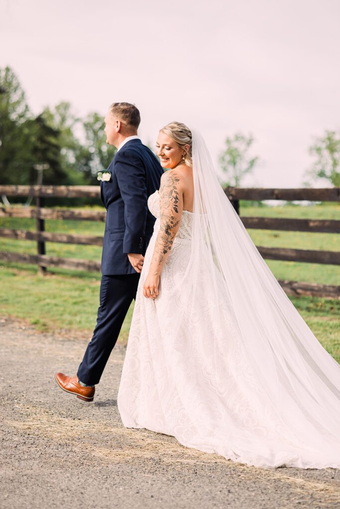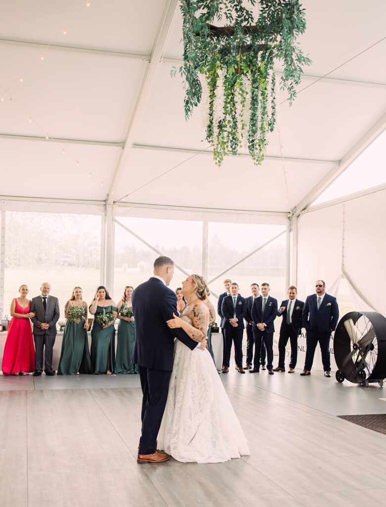 This spring, green themed wedding had perfect light and perfect aesthetic, such as dream to capture! Set at Arbor Haven in Fredericksburg Virginia complete with highland cows, a barn and modern tent made for a perfect backdrop for this spring green event!