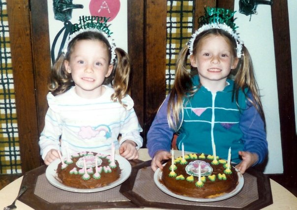 Today is the day my sister crashed my first birthday party! She likes to make an entrance! What a gift. we typically demanded our own cakes and apparently matching party headbands! I’ve started a new tradition of making my sister do something to embarass her! So we’ll be chowing down on ice cream cake {those little chocolate crumbs in the middle are so scrumptious} and hitting up the roller skating rink!