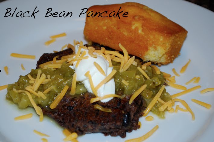 When hubs is gone, I fully partake in all things vegetarian with my sister and here was our latest concoction: black bean pancakes with salsa verde, cheese and cornbread, divine!