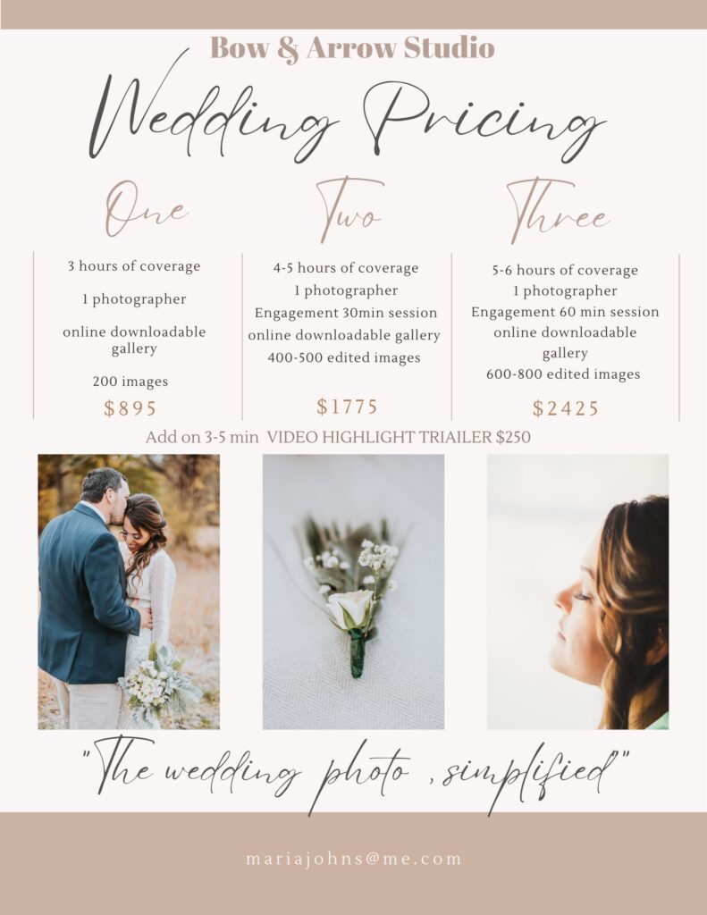 Here is my pricing list so we can see right away if your budget will go together with our services! No gatekeeping or anything hidden here! If I can make a recommendation-you will only have one thing left of your day and it’s photos but if you could add video, I would. The audio and motion of your day is just as powerful as images, trust me.