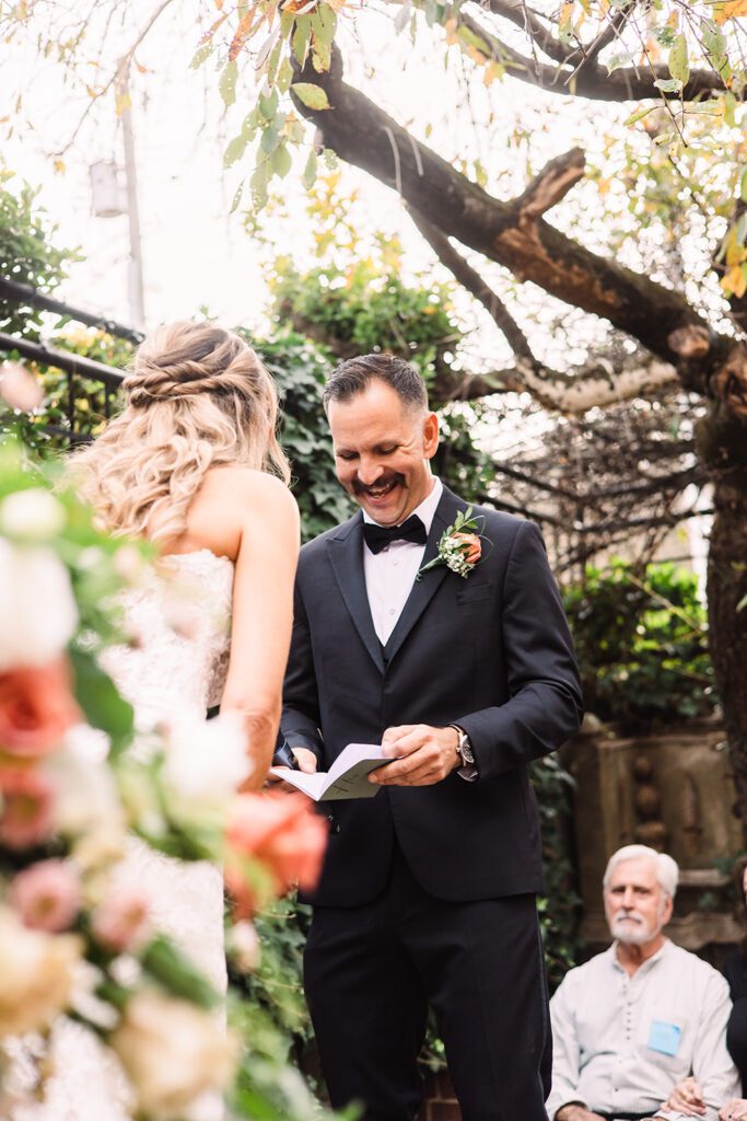 The historic Ironclad inn was full of beautiful backdrops and inviting rooms, making the guests feel comfortable and quite literally at home. The outdoor space complete with a fountain gave the ceremony a modern yet historic backdrop plus our perfect weather with sun flare completed it all!