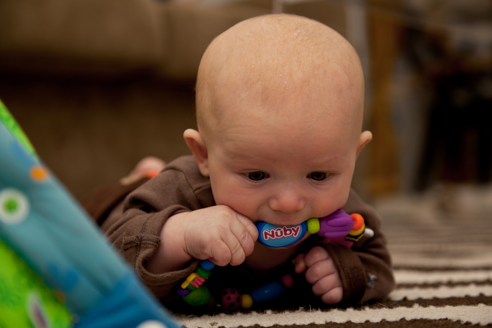 Note, how he’s not on the playmat. Yes that would be him inchworming his way onto the carpet!