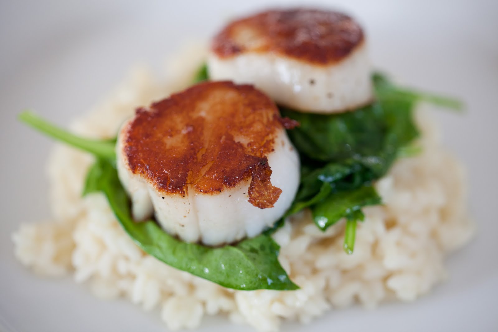 I can’t begin to express how delicious this cheesy risotto was topped with wilted spinach and seared scallops! It certainly made us feel less guilty when we scarfed down triple berry crumble pie with vanilla ice cream! Recipe here.