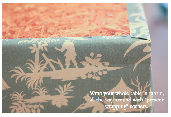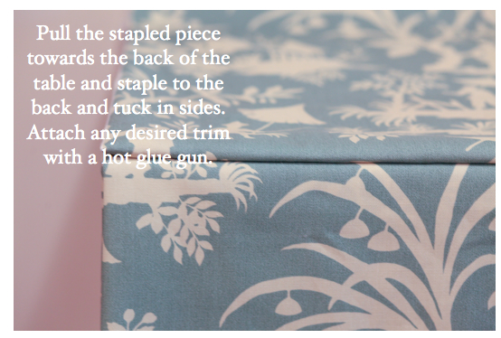 When I got to this step, I ran out of fabric because of the way the pattern was facing, so I have two pieces on the top of my table.