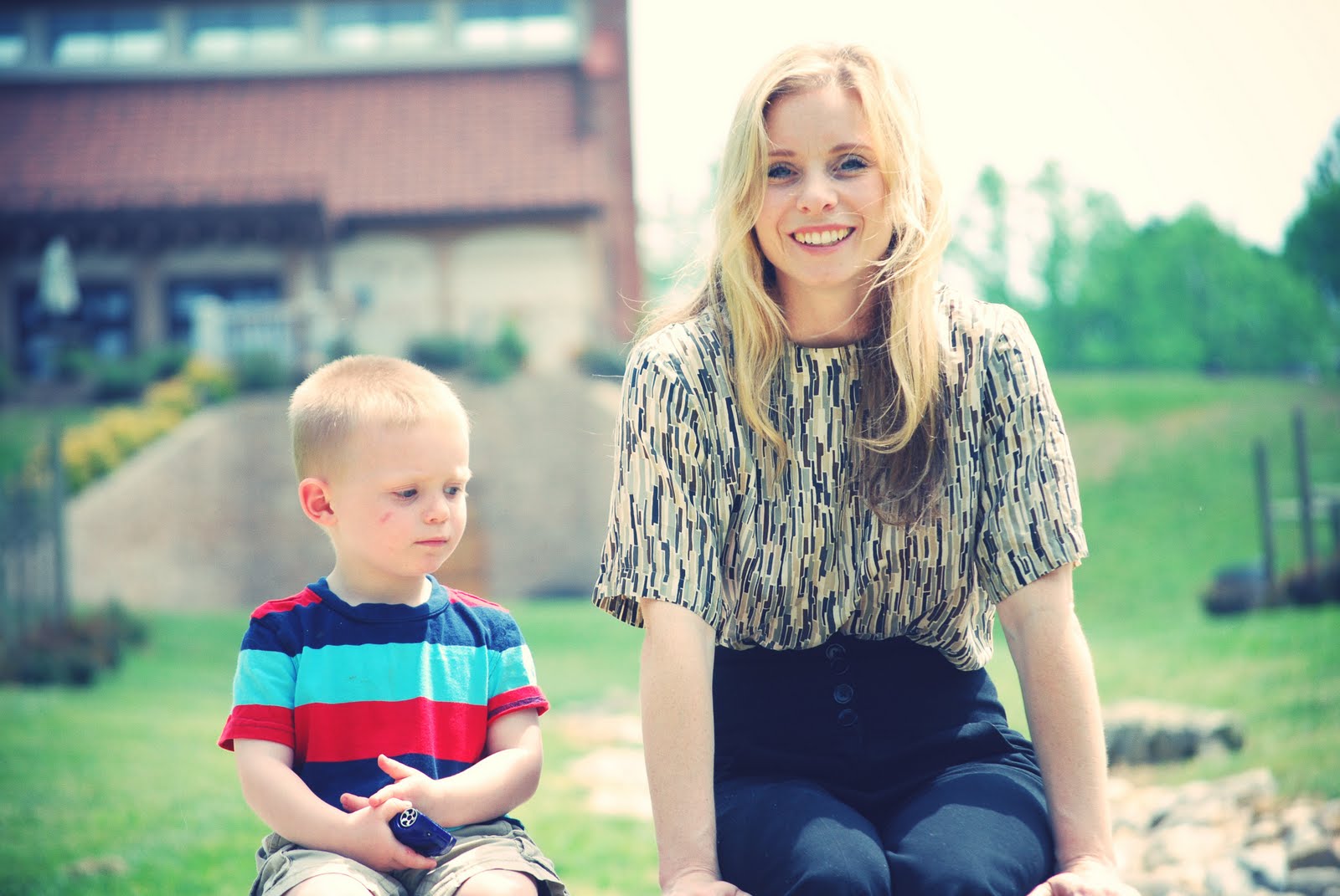 The two of you are so cute! Loving the $1.50 blouse! 🙂 I've also been meaning to tell you how much I enjoyed your house tour! It's so pretty and inviting. Your family must be so happy in it. Yay, Maria!